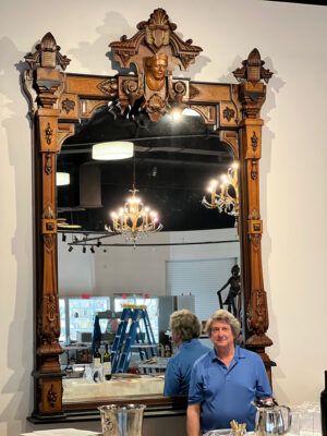 The Highs purchased the mirror more than 10 years ago, she said, and all of the carvings around it were smoke damaged. They decided to get it professionally cleaned a few months ago in anticipation of displaying it in the private collection, and that brought a nice surprise.