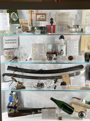- A display case devoted to Napoleon Bonaparte, and Scott pointed to a glass bottle with a clean break near the top of the neck and said, “Napoleon Bonaparte was obviously a big champagne guy, and when his troops won a battle, they were given bottles of champagne when they came back into Paris. And the cavalry, in particular, would take those cavalry sabers, smack the tops of the bottles off to look like that.” That technique, by the way, is called sabrage.